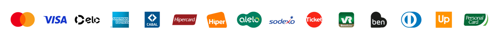 Receba pagamentos em cartão de crédito / débito, dinheiro ou Pix.